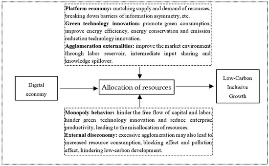 The influence of the mechanisms of the digital economy on low-carbon, inclusive growth.