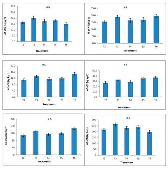3.3.4. Agronomic Efficiency (AE) of Nutrients in Lentil