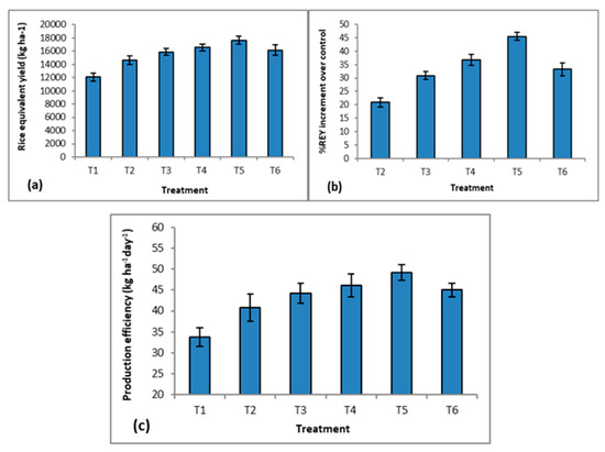 3.5. Rice Equivalent Yield and Production Efficiency