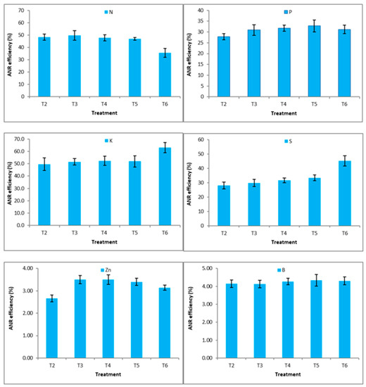 3.6. Total Nutrient Uptake and Apparent Nutrient Recovery Efficiency