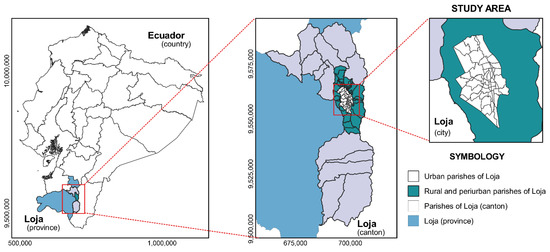 Study area with urban, rural, and peri-urban parishes in canton Loja.