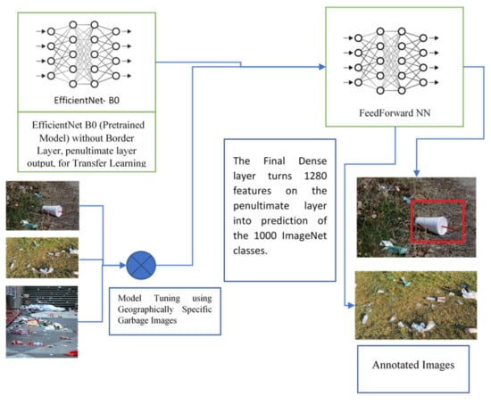 - The model EfficientNet-B0 is a pretrained model using ImageNet with 1000 classes of objects. The model is used as a baseline model for solid waste classification.