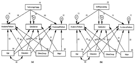(a) Hypothesis testing: direct effects of technology engagement, and (b) hypothesis testing: directs effects of self-regulated learning.