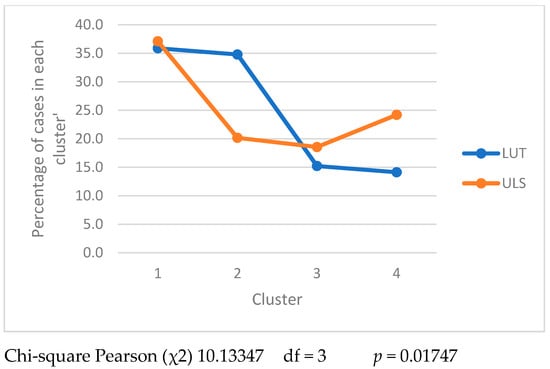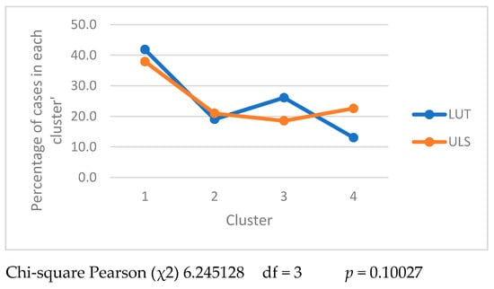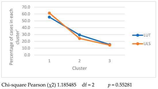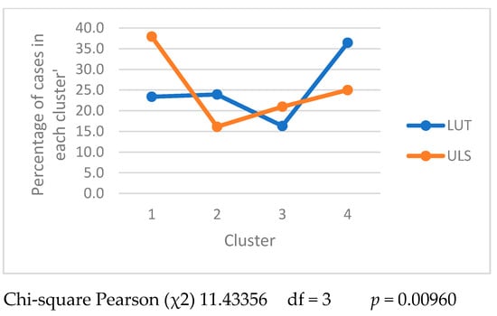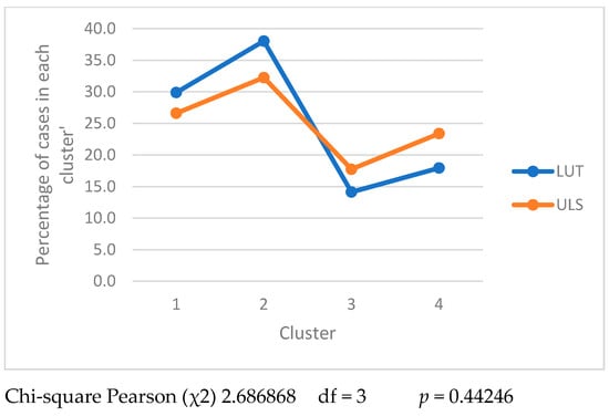 The analysis presented in Figure 3, showing the size of clusters in the studied universities, shows that there were differences between the groups of engineers from LUT and ULS. The value of the chi-square test supported rejection of H0 and the acceptance of the alternate hypothesis that a relationship existed between the two variables, university attended and membership of a specific cluster.