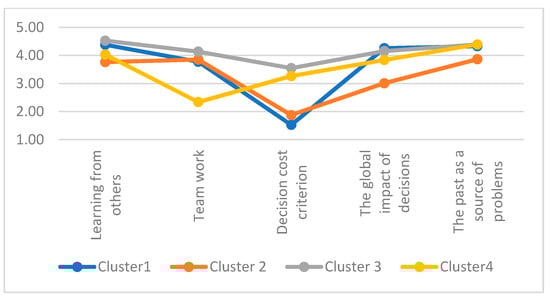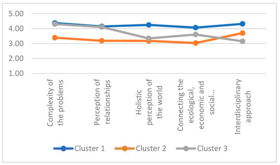 In the area of systemic thinking, three clusters were distinguished (Figure 4).