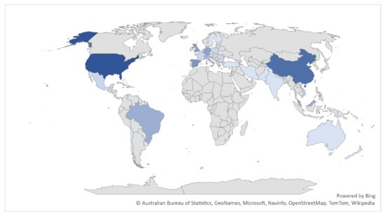 Geographical focus of the papers from 85 papers of the total 339. Darker colored countries identified the density of papers published within the corresponding country.