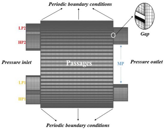 Figure 3 depicts the numerical model. The model consisted of high, middle and low-pressure fixed ports (one group in single operating mode, and two groups in collaborative mode), as well as several moving wave rotor channels. In addition, two gap calculation fields were added between the ports and the channels to improve calculation accuracy.