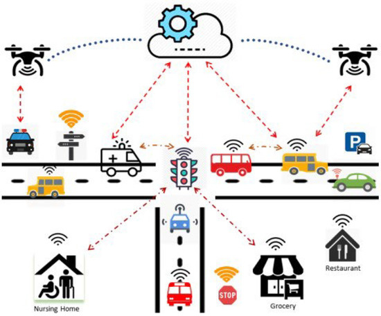 The participating entities including vehicles, law enforcement, drones, parking sensors, or other roadside units (RSUs) must enroll with a central authority to receive certificates and ensure the trustworthiness of messages exchanged among entities. The communication technologies which can enable the exchange of messages can include LTE, Wi-Fi, 5G, or Dedicated Short Range Communication (DSRC). In addition, Message Queuing Telemetry Transport (MQTT) messaging protocol has been widely used to support physical entity to cloud service providers such as Amazon Web Services (AWS) or Microsoft Azure. This architecture will need multiple technologies and communication protocols to cater different use cases. Communication can happen among different physical entities, using cloud-supported services, edge-assisted messaging, or even the peer-to-peer model [84,85,86,87]. Such infrastructures and supported technologies will need long term investment and partnership among public and private entities to enable hundreds of smart devices to interact with each other.