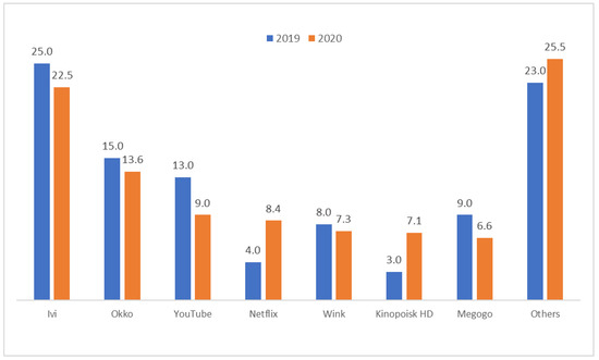 As one can see, the revenue of online streaming services was distributed evenly during the pandemic. This can be explained as follows (see Figure 3). When the pandemic hit hard, more streaming services were founded in Russia. New platforms such as Kinopoisk HD and Netflix started to lure new customers by free trial promo codes. This is one of the examples from the area of entertainment, though the people were mostly concerned with social distancing and health issues. This is due to the fact that streaming services constitute an integral part of the development of smart cities. The smart city environment is controlled and monitored with advanced technologies and new types of communication are used for improving the quality of life of its inhabitants with innovative services. One of the key challenges facing communication in smart cities is multimedia communication, and most importantly, video streaming that can be of high benefit for smart transport traffic management, as well as for providing entertainment and advertising services.