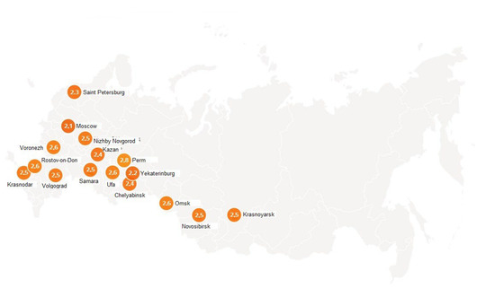 Food delivery in Russian cities (in millions of dollars). Source: own results.