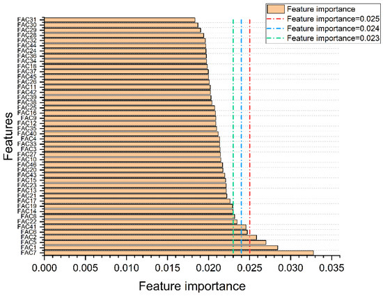 Step 7. From Formulas (16) and (17), the importance of a feature can be calculated.
