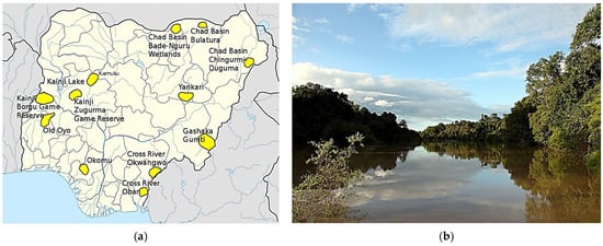 - United Nations Environment Programme, World Conservation Monitoring Centre. Kainji Lake National Park. 2007. Available online: https://web.archive.org/web/20070930012150/unep-wcmc.org/sites/pa/0302p.htm (accessed on 1 December 2021).