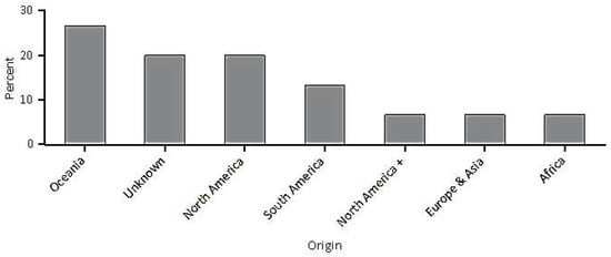 | Stratum | Africa | Europe and Asia | North America | North America + | Oceania | South America | Unknown |