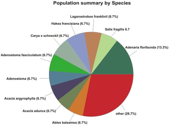| Species | Number of Trees | Percentage of Population |
