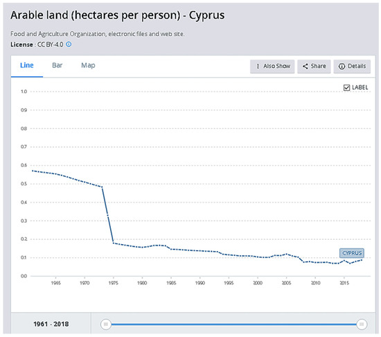 Decline in arable land in Cyprus between 1961 and 2018 [28].