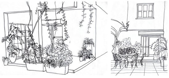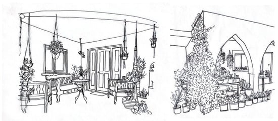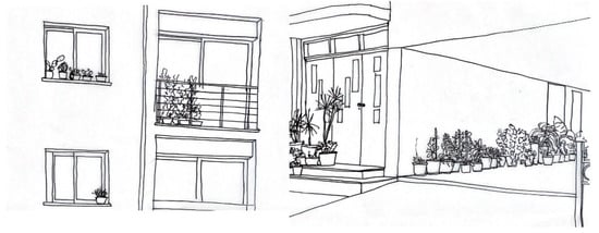 This research utilized an in situ observational sketching technique which is the practice of sketching on location to record the existing context. In architecture, observational sketching has been used as an effective tool for studying and analyzing the built environment [115,116]. Observational sketching empowers the researchers to consciously select which specific data to draw and illustrate. In this regard, observational sketching provides a partial and tentative representation of the observed phenomenon. The researcher can focus on small details by utilizing observational sketching and can only select and illustrate the vital data. In fact, the researcher is not obliged to draw everything within the field of vision. Observational sketching requires concentration and paying attention to details. It requires selecting and illustrating crucial data, while other data collection methods, such as participant observation, might overlook such crucial details [115]. The practice of observational drawing during the fieldwork required the researcher as an observer to spend time within a particular location. In this context, observational drawing is durational, as it takes place over time [117]. Observational sketching was utilized to illustrate how local people arrange their green decorative elements and edible gardens within their residential buildings. Unstructured interviews were used to elicit data from the research participants as informants. Local Cypriots were interviewed to gain an in-depth insight into how locals perceive their edible and decorative gardens [114].