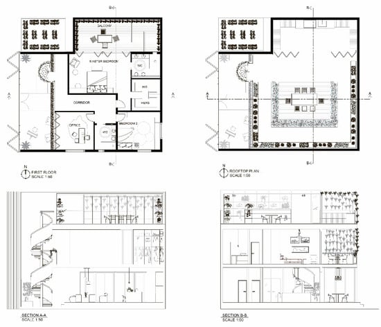 Contemporary urban rooftops are mainly wasted space [35]. Flat roofs inside the dense urban fabric of the cities can be considered as potential spaces for cultivating food and practicing urban farming [51,89]. The rooftops usually have more exposure to solar energy than the ground below, making them ideal spaces for cultivating plants. The potential challenges for practicing rooftop urban agriculture include the following: preventive local policies and building codes, accessibility to the roof, imposing additional load on the building’s structure, utility hook-ups, water leakage, and potential damage to the roof’s insulation layers [101]. Despite these challenges, residential rooftops can be utilized to grow plants by installing soil-based or hydroponic systems [92,95].