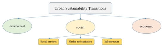 The same methodology was exploited for assessing the sustainability of Tehran’s counties. Figure 4 reveals the framework for assessing Tehran Province’s sustainability transitions over a decade. Different colors in this figure demonstrate three dimensions and their indicators. In this model, economic prosperity is acceptable in that it strengthens economic sustainability and efficiency by offering solutions to increase social equality as well as preserving natural resources. Evaluating sustainability transitions in the Tehran Province entails proposing an assessment framework, embracing various economic, social, and environmental indicators. Focusing on previous sustainability studies is also necessary in order to recognize the most frequently used indicator in sustainability assessments. With regards to accessibility of data and sustainable development indicators, the authors propose an assessment framework involving 60 economic, social, and environmental indicators. Table 4 presents the assessment indicators.