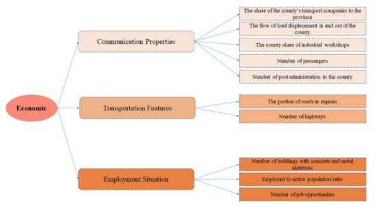 Regarding the factor analysis result, the Analytic Network Process was shaped. Figure 5 demonstrates the network of economic dimension. Different colors in this figure show various factors and their indicators.