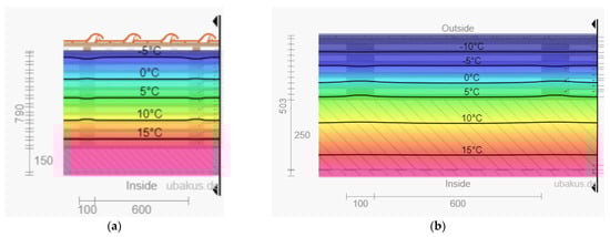- The inner surface temperature of the envelope element was between 17.2 °C and 17.9 °C, depending on the temperature difference between the interior and exterior environments. The specific climate zone in which the simulation was performed had little to no effect on the interior surface temperature in the case of highly efficient envelope elements: the maximum temperature difference between the interior temperatures of the surface elements did not exceed 0.5 °C (2.9%).