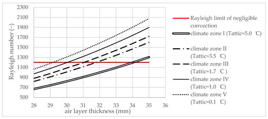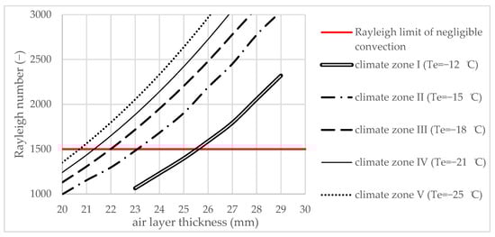 - Ra ≤ 1500 for the exterior walls (vertical air chambers).