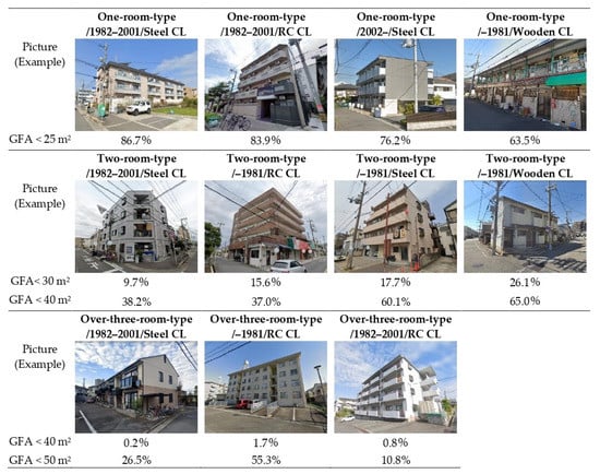 - Tsuda, M.; Nagamine, H. Residential career and economic conditions of the wooden apartment inhabitants: A report on the household characteristics of the wooden apartments compared with the renewed houses: Part 2. J. Archit. Plan. Environ. Eng. (Trans. AIJ) 1989, 404, 99–110. (In Japanese) [Google Scholar] [CrossRef][Green Version]