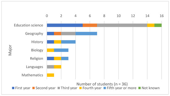 Major and study year of student teachers who participated in this study.