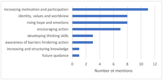 Concerning teachers’ impact on students, SSTs highlighted tackling climate anxiety, an optimistic attitude towards the future, and the importance of CCE in upper secondary school.