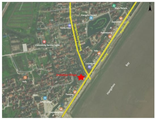 Coastal fishing villages in the Yangtze River Basin are typical villages presenting interactions between the environment, society, and people, which can be divided into two types: offshore and island types. Jinshanzui village is located in Jinshan town of Shanghai. It is an offshore type and the earliest fishing village in Shanghai. It is also the only preserved fishing village in Shanghai. It is confronted with the sea and surrounded by highways. Its location limits its boundaries (Figure 1). It has a population of 2000, and over 1200 of them are inhabitants [33]. The village covers an area of 3.5 km2, and its coastline is over 6 km in length [33]. The village was formed in the 1960s, and its development reached its peak in the 1990s. There were over 800 fishermen and 45 fishing boats at that time [33]. The village has receded at the beginning of the 21st century, and there are currently 18 fishing boats and 100 fishermen. It has begun to transform since 2010 [34].