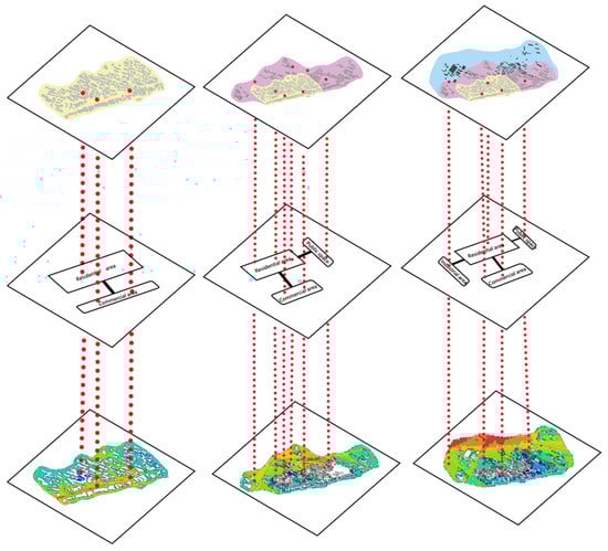 The ecological and production functions were analyzed with space syntax. Space syntax is a science-based and human-focused approach that explores relationships between space and its relevant social and cultural phenomena through the quantitative expression of physical habitat structures, including buildings, settlements, and landscapes [37].