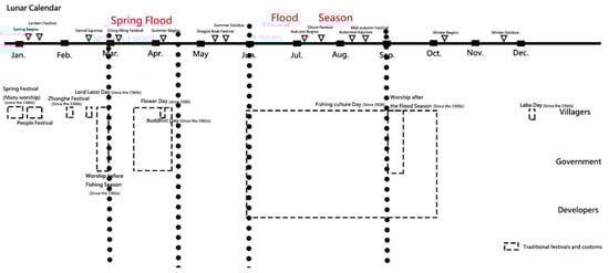 The development of Tianao village has tended to follow a top-down pattern. After 2000, inhabitants found business opportunities owing to the increase in visitors to the village, and most of them chose to start relevant businesses and homestays [59]. The planning and management of Tianao village were destroyed. Thus, the government began to rebuild these plans through the Beautiful Island Project. The government encouraged inhabitants to develop the industrial chain of the fishery. With the development of these industries, inhabitants gained a lot of benefits and attracted many outsiders who came there for homestays. Thus, the number of the homestays increased. These homestays lacked local features and damaged previous planning. After 2010, the fishing ban policy disconnected the fishery and other industries of the village. Most of buildings in the village needed to be revitalized. The number of visitors was reduced, and the tourism sector was damaged. Many young people moved to the city. Middle-aged people were forced to give up their fishery and went to the city to work and support their families [57]. A large number of elderly people continued to stay in the village, which hindered its development to some extent (Table 3).