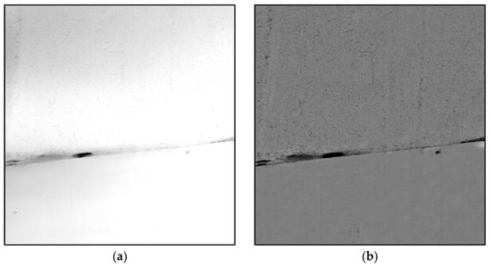 As shown in the Figure 3, the collected 3D pavement is not a flat surface but a complex shape that consists of varying pavement features, such as cross slope and edge drop-off, and pavement deformations, such as rutting. To rectify a range image is to remove these macro-features so that localized features, such as cracks, joints, and aggregate loss, can be enhanced and more easily identified. Figure 4a shows an example of a range image before rectification. After rectification, the joint and material loss on the pavement is easier to see, as shown in the rectified image in Figure 4b. The rectification can be performed using a moving average filter.