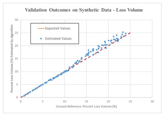 Validation outcomes of aggregate loss volume using synthetic dataset.