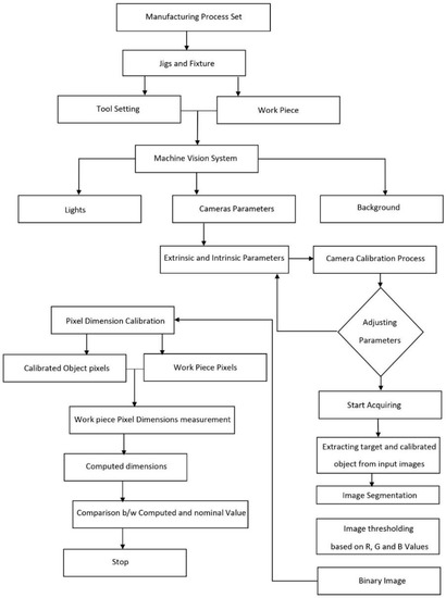 The obtained parameters are then validated with a digital Vernier caliper. The flow chart of the proposed in-process measurement system is shown in Figure 5.