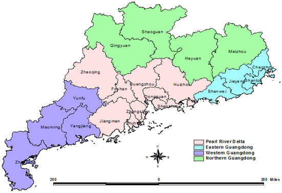 The study area of four regions and 21 cities in Guangdong Province.