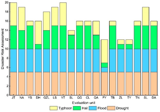 Risk evaluation value of multi-hazard meteorological disasters under the disaster index of 15% ≤ x < 20%.