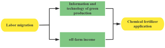 Lack of information leads to factor allocation failure and increases the risk of adoption of new technologies [32,33]. The more that farmers master agricultural production techniques and technology, the more likely it is to promote agricultural production method transformation [34], ultimately affecting the amount of chemical fertilizer needed by farmers [35]. On the one hand, labor migration overcomes the constraints of traditional communication channels, such as acquaintance networks, by expanding access to information and technology and improving information acquisition [36]. On the other hand, farmers’ choice of labor migration alleviates the information asymmetry in the process of green agricultural production. Farmers have easier access to knowledge and technology on green agriculture. With an awareness of cost-and-benefit information related to green production, farmers come to understand that excessive use of chemical fertilizers is detrimental to soil fertility and land quality, which encourages them to adopt green technologies instead of using more chemical fertilizers [37,38].