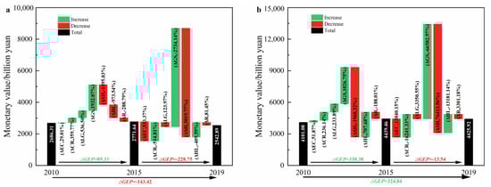 - Zou, Z.; Wu, T.; Xiao, Y.; Song, C.; Wang, K.; Ouyang, Z. Valuing Natural Capital amidst Rapid Urbanization: Assessing the Gross Ecosystem Product (GEP) of China’s ‘Chang-Zhu-Tan’Megacity. Environ. Res. Lett. 2020, 15, 124019. [Google Scholar] [CrossRef]