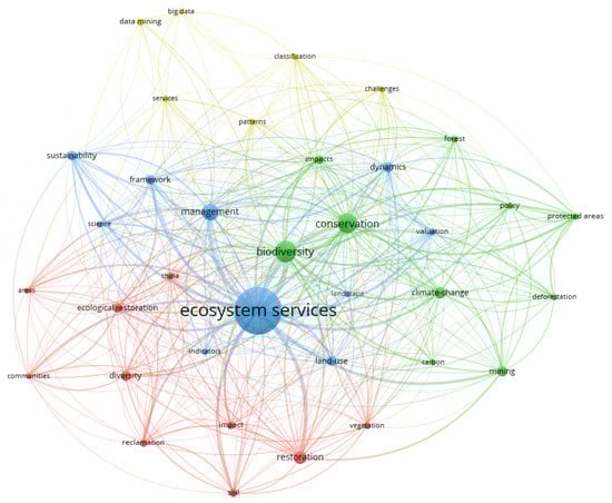Research keywords of documents searched for (“ecosystem services”) AND (“mine” OR “mining”).