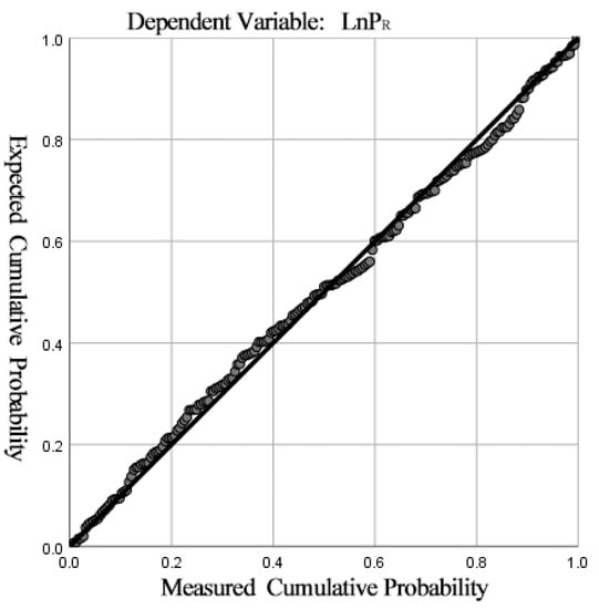Normal P-P of the standardized residual of the regression result of “lnPR”.