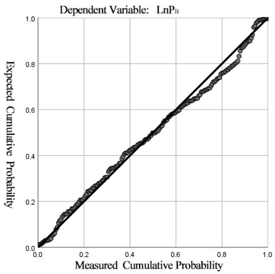 Normal P-P of the standardized residual of the regression result of “lnPB”.