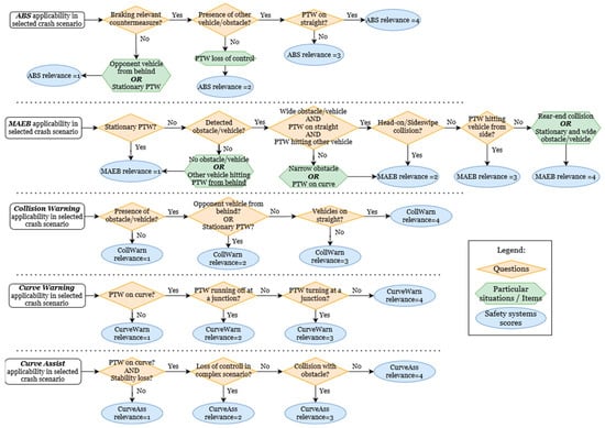 Scoring scheme of relevance. Using this flowchart, each safety system was evaluated in each scenario, obtaining a score from 1 to 4. Regenerated from Savino et al. (2019) [21].