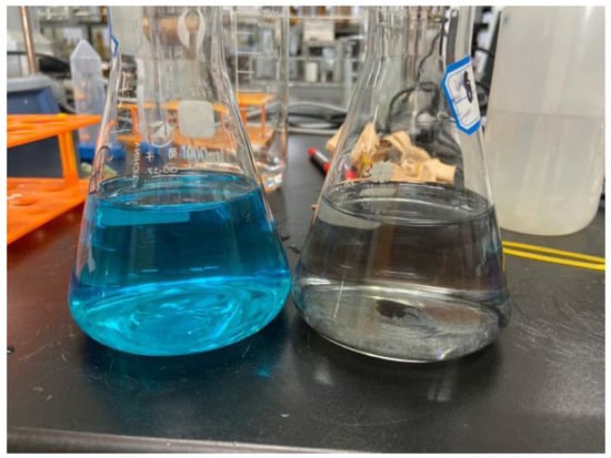 Comparison of MB solution before and after adsorption.