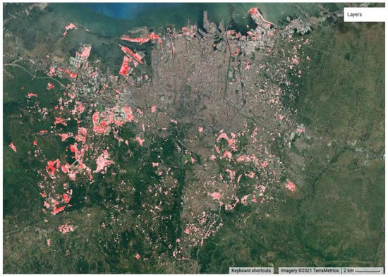 In Tembalang district, there was a transition from agriculture to commercial, industrial, and urban areas. The uptick in suburban housing and economy in Tembalang is an indicator of how the urban planning of Semarang as a whole is developing. Semarang’s population has burgeoned in recent years []. With this increase in population, there needs to be an increase in economic opportunities and safe, affordable housing for these individuals. These align with guidelines eight and nine of the United Nations Sustainable Development Goals, which highlight the need for decent work and economic growth and industry, innovation, and infrastructure, respectively [].