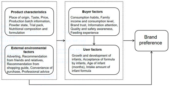 Theoretical model of factors influencing consumers’ brand preferences for infant formula.