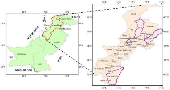 The present study was conducted in Khyber Pakhtunkhwa (KP) province, Pakistan, from January 2021 to March 2021. Four-hundred and sixty questionnaires were distributed to wheat farmers to collect the data required for this study. Basic information was collected via face-to-face interviews with wheat growers using a multistage random sampling technique. To understand the first phase of ICT adoption by wheat growers in KP province, data collection was conducted in four districts, namely Dera Ismail Khan, Charsadda, Mansehra, and Swat, based on the share of agricultural production in these regions (Figure 1 and Table 1).