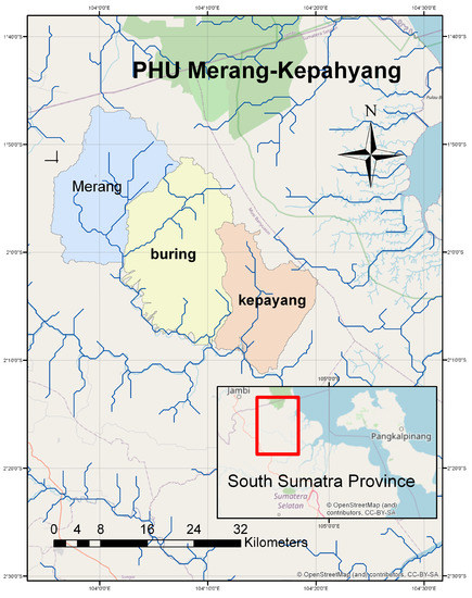 The location of the study is in Peat Hydrology Unit (PHU) Merang-Kepahyang. This study site is administratively located within Musi Banyuasin (MUBA) Regency of the South Sumatra Province, as shown in Figure 1.