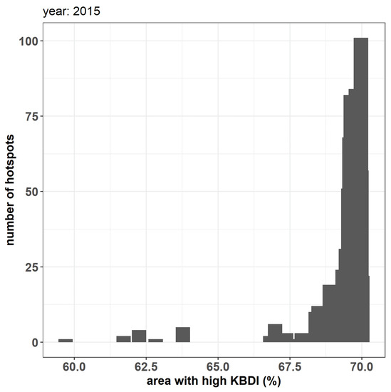 Distribution of hotspots over areas with high mKBDI in 2015. Hotspots were only monitored when the area had high mKBDI ≥ 60%.