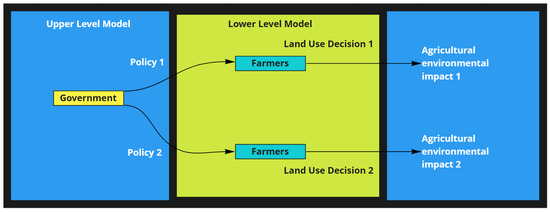 An early attempt to apply BLP techniques to modeling government structures and decision making is discussed in [6], where the relationship between central government and government ministries represents the two levels of an optimization problem. Several decades ago, Candler and Norton [7] applied BLP between the government and the private sector for an economic policy application where the government uses taxes and subsidies to achieve pre-determined goals, and the private sector reacts to those measures by forming an optimal plan of action. As a result, the authors showed that when individuals’ objectives are recognized as part of the problem, the profit for the community could be doubled. In a recent study, Bostian et al. [8] use BL optimization in a different way, to include not only two levels of actors or institutions, but also the spatial aspects—agricultural nonpoint source pollution and spatial heterogeneity of both production and pollution—accounting for the interlinked nature of farm-level management decisions and their relation to agri-environmental policy incentives.