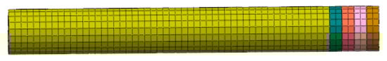 Stages 3–5: In each stage, the shield machine advances 2 m along the y-axis to cut the soil, applying a force of 150 kN/m2 to the excavated soil surface to simulate the shield palm surface thrust and promptly assembling the excavated soil with the pipe sheet until the cutter reaches the end of the wing wall.